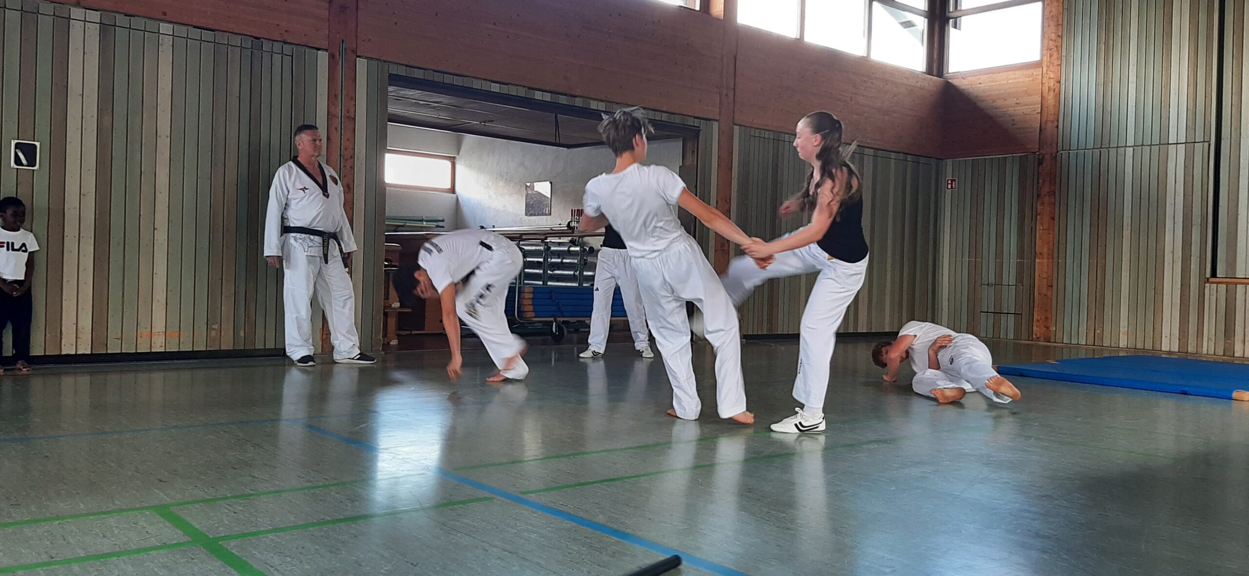 Auch die verschiedenen Sparten des Vereins des TuS stellten sich vor: Die Stuhl-Gymnastikgruppe zeigte ihre Beweglichkeit und bei „Pilates meets Yoga“ wurden die Feinheiten der beiden Sportarten herausgestellt. Die Sparte Taekwondo beeindruckte mit Formenläufen und kraftvollen Bruchtests. Die älteren Kampsportler zeigten außerdem, wie man sich gegen Angriffe zur Wehr setzen kann. Die Leistungsturnerinnen präsentierten akrobatische Elemente und spektakulären Küren, während die Tennisabteilung zu Mitmachaktionen einlud.